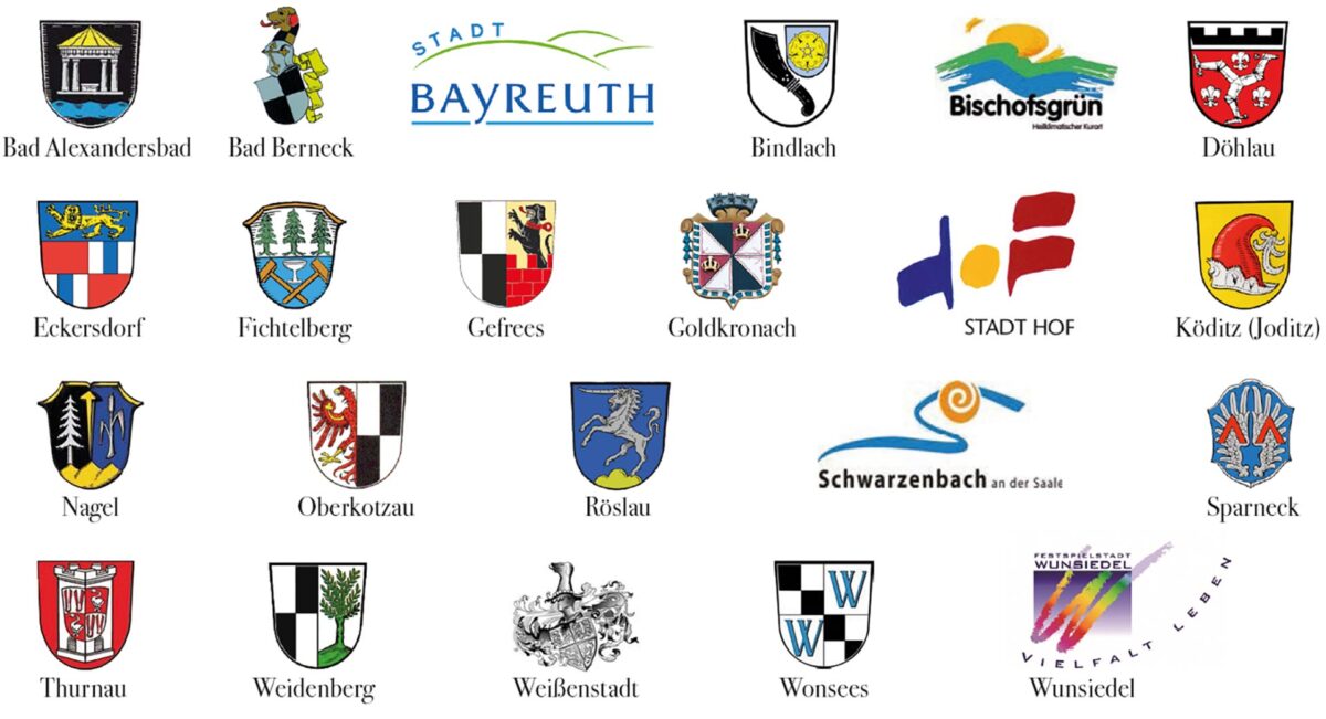 22 GEMEINDEN am Weg, inklusive der kreisfreien Städte Bayreuth und Hof,