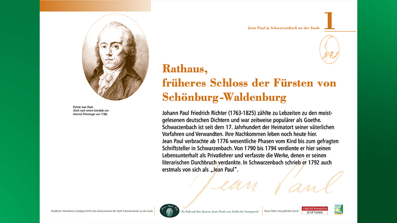 Schließlich hat Jean Paul (er französisierte seinen Namen aus Bewunderung für die Natur-Pädagogik von Jean-Jacques Rousseau) zwei Drittel seines Lebens in dieser Region verbracht. Er hat diese auch häufig zu Fuß durchwandert – 40 km Tagesmarsch waren damals keine Seltenheit und Gedanken wurden im Freien gefasst.