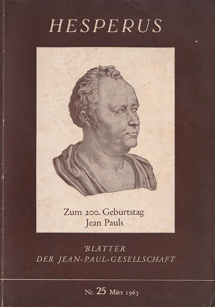 1963 nicht – und offenbar auch später nicht, als die Hesperus „Blätter der Jean-Paul-Gesellschaft“ ab 1966 durch die wissenschaftlich-neutralen Jahrbücher der Jean Paul Gesellschaft ersetzt wurden . . .