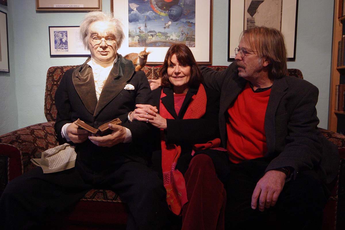 In den Wilhelmine-Parks war es später Peter Kampschulte vom Theater Hof, der – mit des Dichters Eichhörnchen und/oder einem Bierkrug in den Händen – frei aus dem Ärmel, nein aus dem Gedächtnis schüttelte, was so an Reimen oder freien Assoziationen zur jeweiligen Situation oder den zufälligen Gesprächspartnern passte. In Sanspareil durfte er sich dann mit dem jungen Jean Paul (von den Eltern Fritz gerufen) endlich mal so richtig aussprechen und Kindheitserinnerungen aufwärmen, der Pfarrerssohn aus Joditz – wieder ein Fritz – war nicht auf den Mund gefallen.