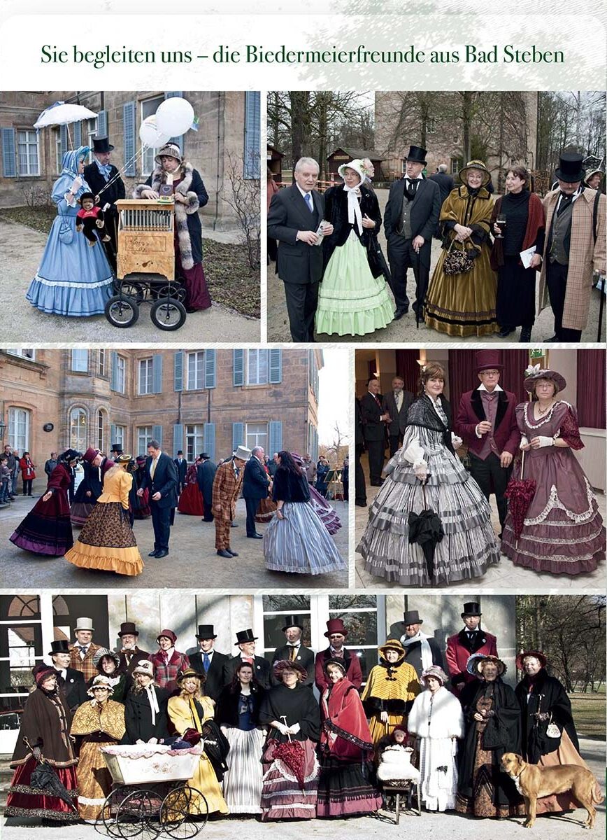 Ohne sie hätte der Jean-Paul-Weg als „work in progress“ wohl nicht dieses unvergessliche Flair bekommen. Vom 21.3.2010 an, als der Weg vom Norden Oberfrankens endlich im Bayreuther Stadtgebiet ankam und mit einem wunderbaren Arkadienfest im Schlosspark der Eremitage gefeiert wurde, bis zum, 7. Oktober 2012, dem Abschlussfest in Sanspareil, waren jedes Jahr bis zu 30 kostümierte Biedermeierfreunde als Zeitgenossen Jean Pauls mit von der Partie.