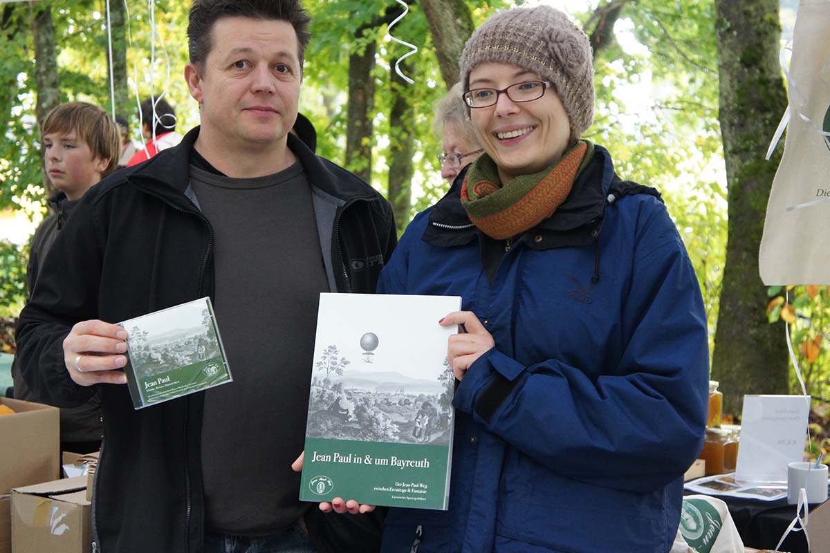 Wer gar im Park des markgräflichen Schlosses Fantaisie (Stationen 132 & 133) bei Bayreuth die Szenen hört, die Jean Paul sich dort vorstellte (und in seinem Roman Siebenkäs erzählt), erfährt die zauberhafte Bayreuther Landschaft auf eine Weise, wie sie nur der wortreiche, tief empfindende Dichter zu geben vermag.