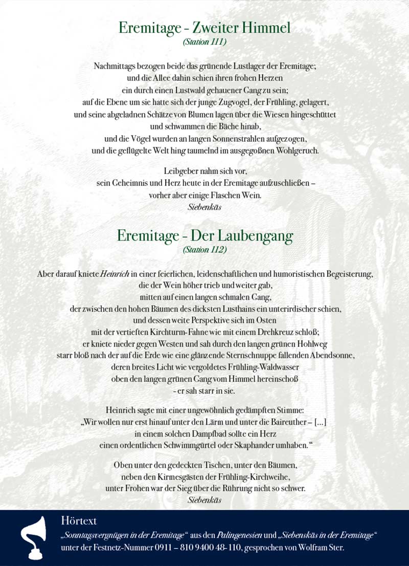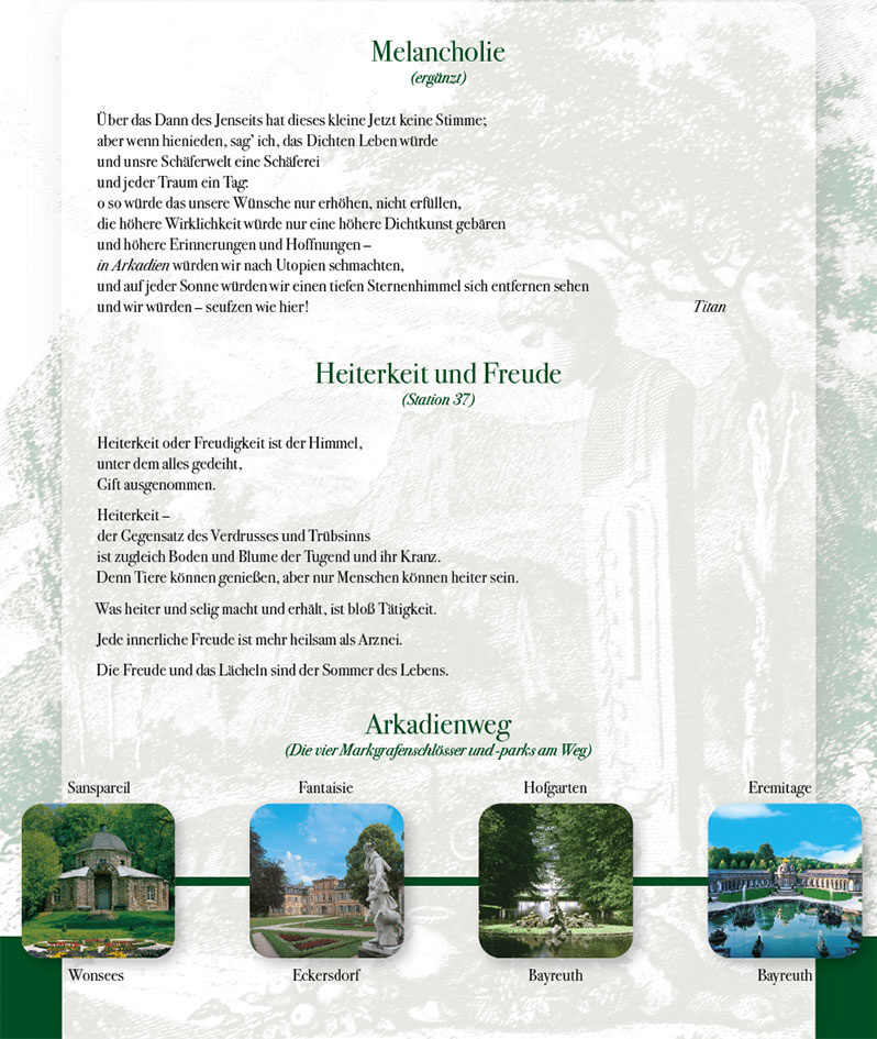 Für Spaziergänger auf dem Arkadien-Weg in & um Bayreuth verweisen wir auf „In Arkadiens Gärten“