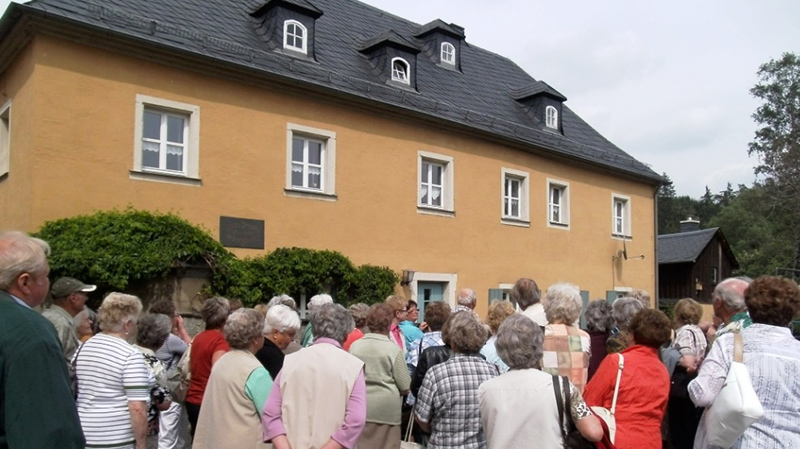 das seit 1998 ganze Bus-Karawanen anlockte und bei allen Besuchern helle Begeisterung auslöste, vor allem wenn Eberhard Schmidt dann auch noch in die gegenüberliegende Barock-Kirche führte (mit menschlichem „Nacktarsch-Jesus“ auf der Kanzelkuppel) und von des Dichters Kindheit in Dorf, Pfarrgarten und Pfarrhaus erzählte