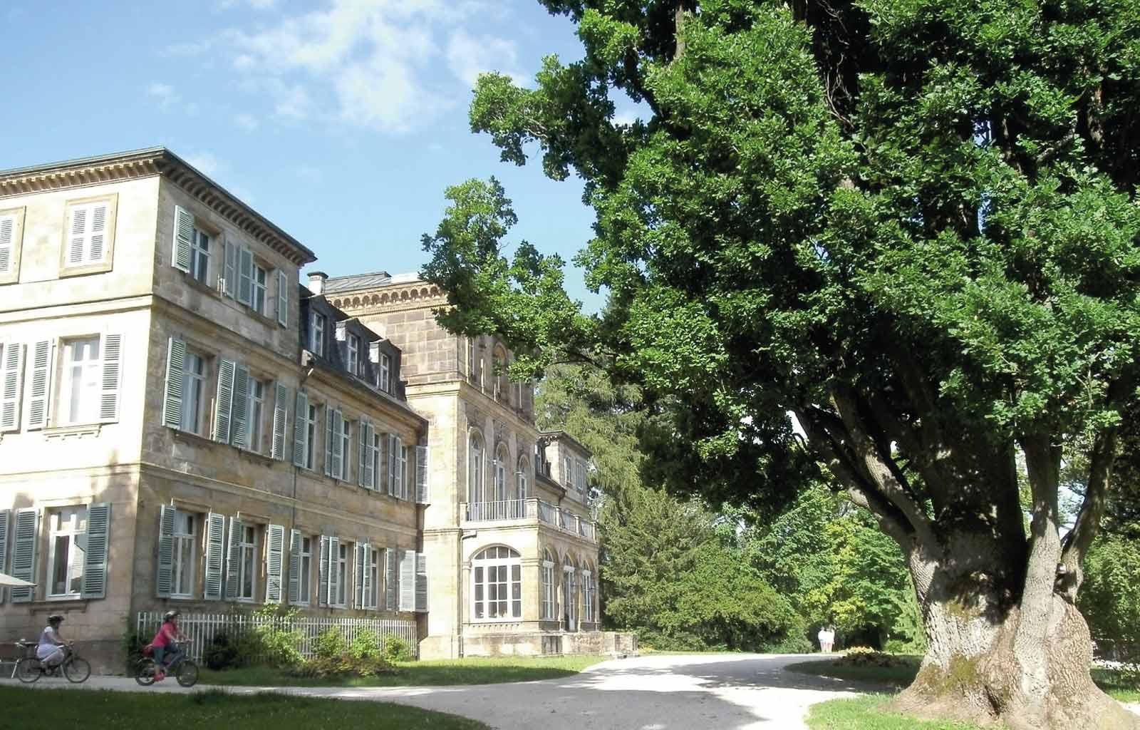 Dort biegt die Markierung nach rechts in den Fußgänger-, Fahrrad- und Hundeweg ein. Nach einigen Hundert Metern landet dieser erholsame Parkweg wieder auf der Meyernberger Straße, an deren oberem Ende das Schloss-Domizil des Stadtgartenamtes steht.
