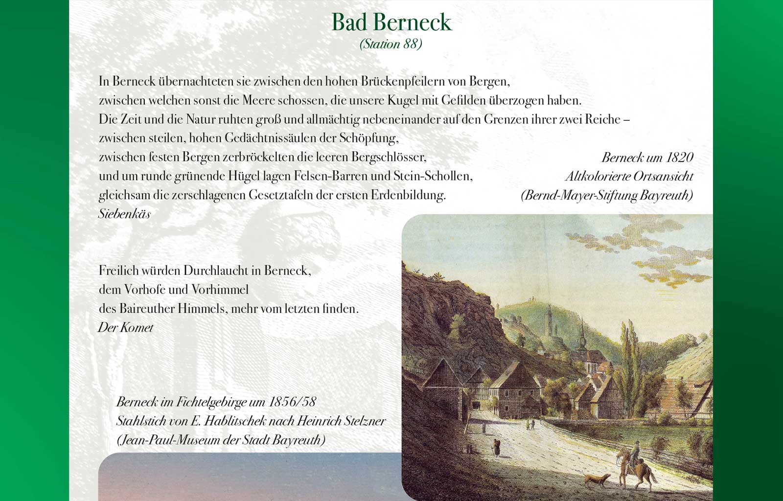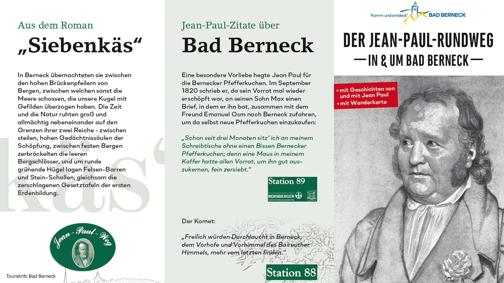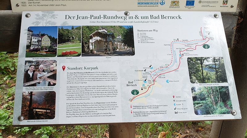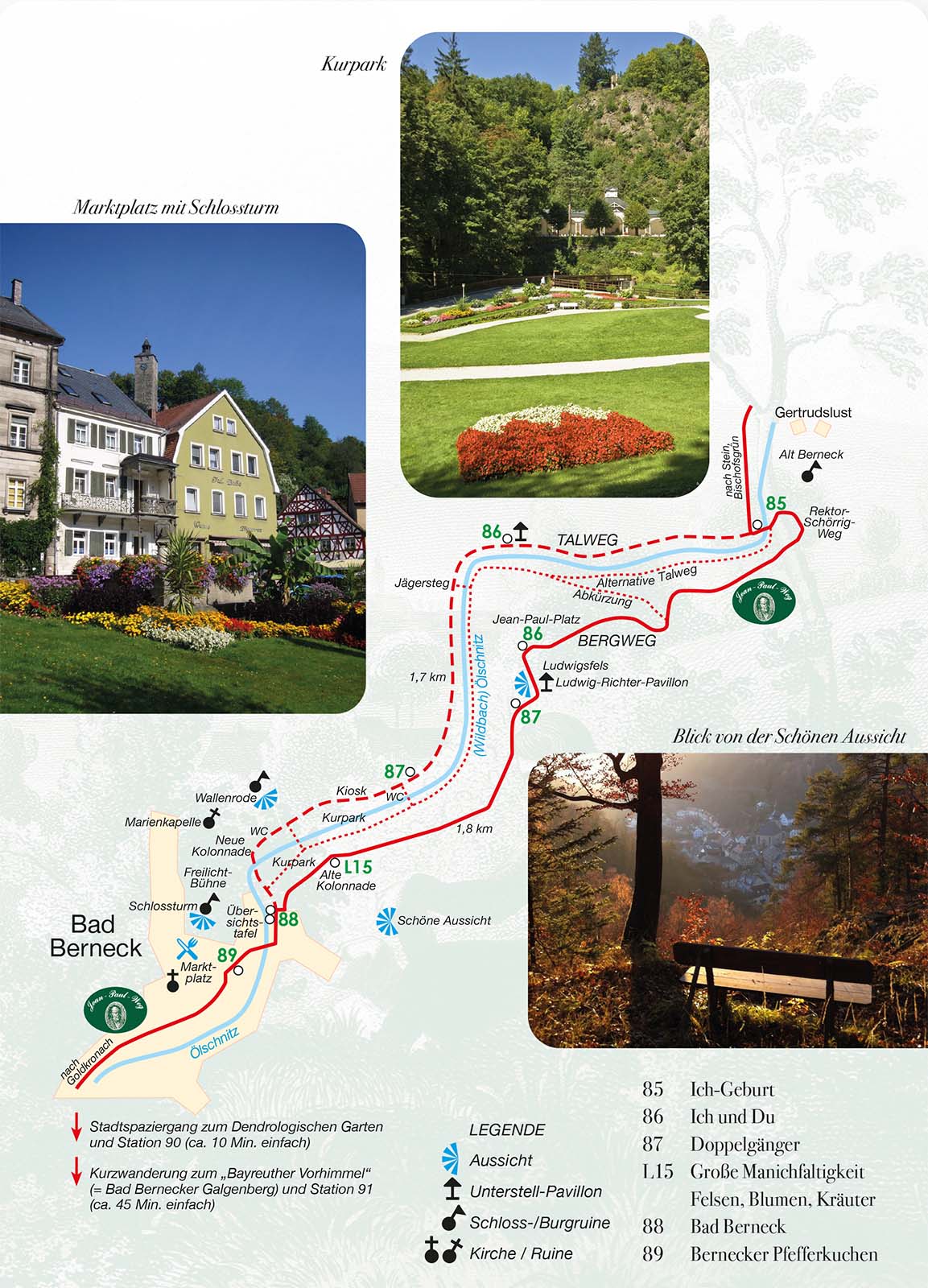 Der Jean Paul-Rundweg in Bad Berneck bietet vielfältige und liebreizende Spazier- und Wanderalternativen. Vom schmucken Marktplatz mit seinen zahlreichen gastronomischen Angeboten ausgehend, ist man in kürzester Zeit im wildromantischen, schattigen Ölschnitztal mit dem Kurpark angelangt.