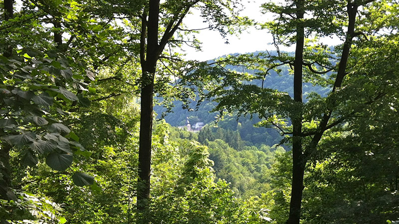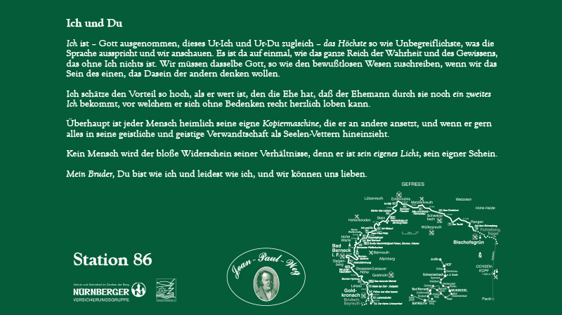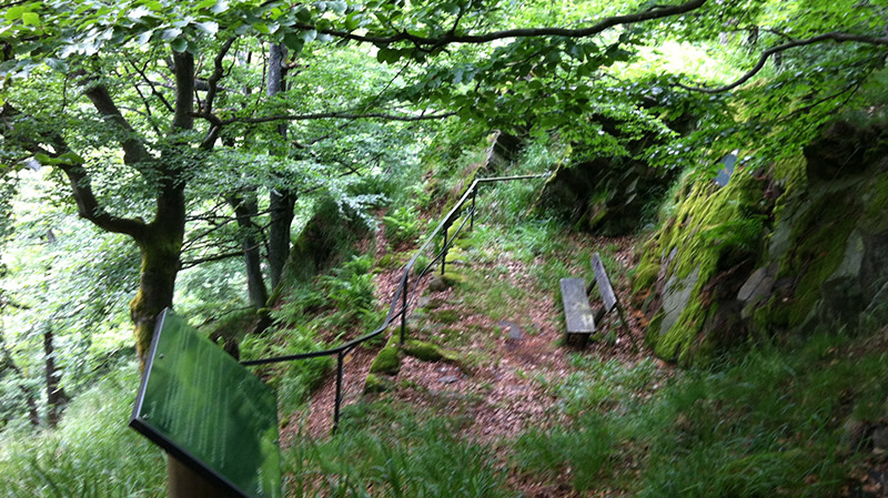 Der eigentliche Jean Paul-Weg führt über die Bergvariante von der Getrudslust auf dem Rektor-Schörrig-Weg kurz im Zick-Zack, dann weiter sanft ansteigend bis zum historischen, versteckt liegenden