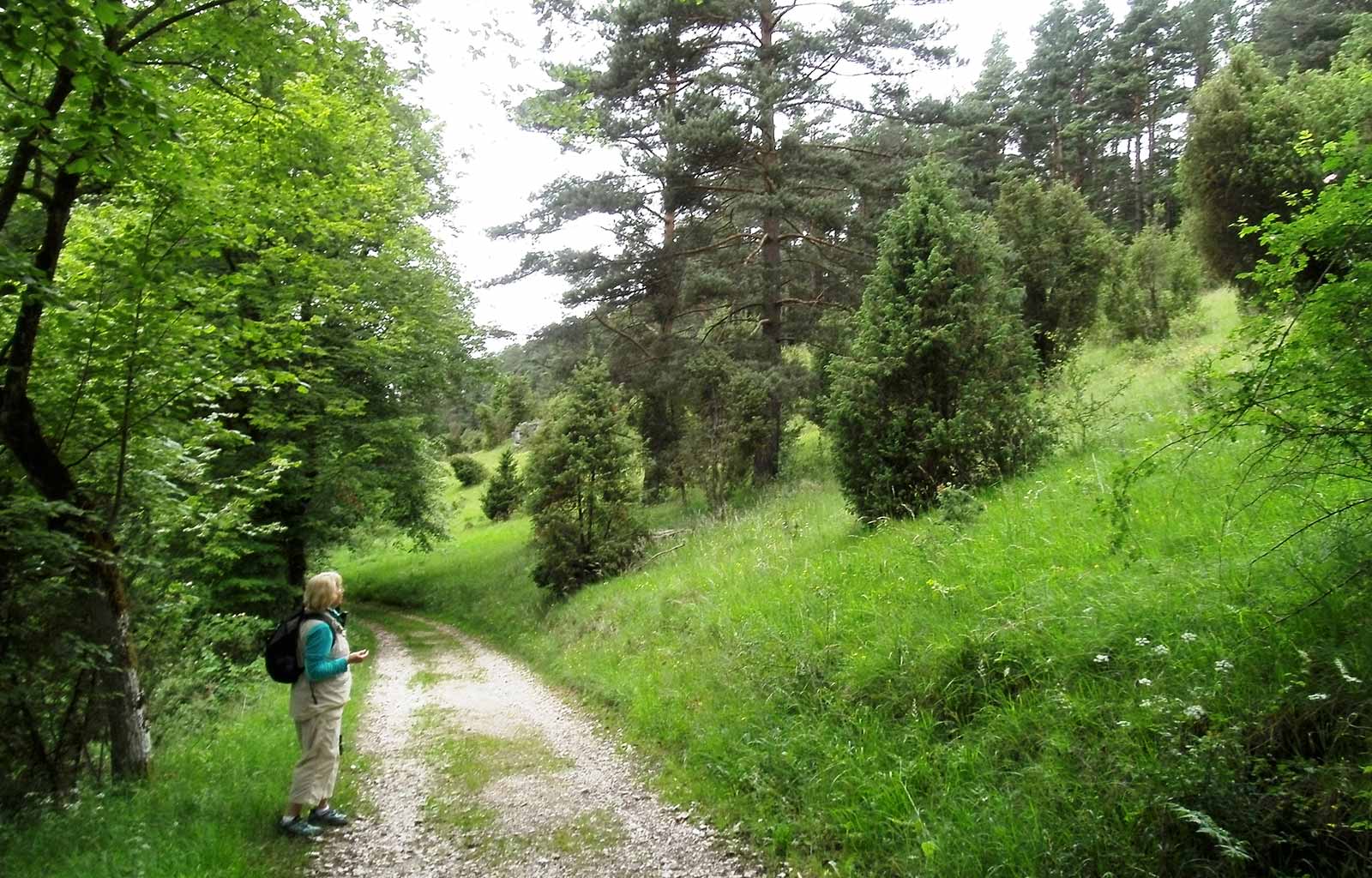 Unsere Bild-Wanderung – immer von links nach rechts – folgt daher dem üblichen Ausflugsschema und beginnt am großen Parkplatz in Sanspareil, verlässt diesen in Richtung Kleinhül (die urige „Weiberwirtschaft“ hat nicht immer auf!), durchquert den kleinen Ort, um dann in weitem Bogen – vielleicht mit Bank-Pausen – das stille Wacholdertal zu erreichen.