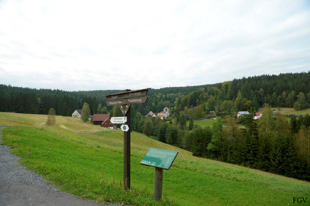 Bei der Bushaltestelle Bischofsgrün Rathaus (329 & 369) starten wir unsere Wanderung in Richtung Kirche. Nach 200 m, etwa 50 m vor dem Gotteshaus, gehen wir nach rechts durch die Birnstengeler Straße abwärts bis zum Haus Nr. 48.