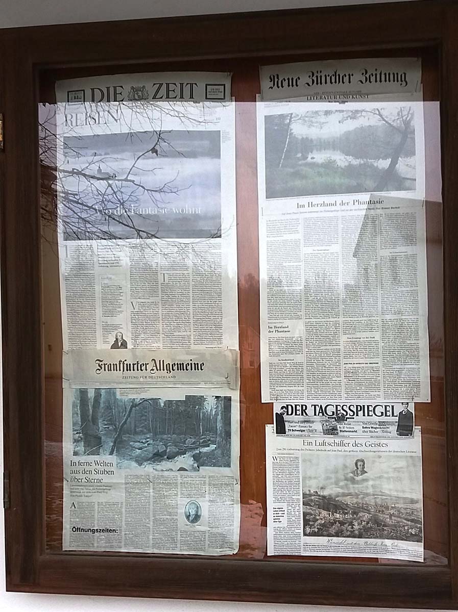 - In der Schriftenreihe des Museums erschien im November 2001 der erste Band mit dem Titel Traumwelten. Der zweite Band der Buchreihe von Dieter Richter trägt den Titel Jean Paul und Italien. Mit einem imaginären Reiseführer von Jean Paul Friedrich Richter und wurde im Herbst 2002 vorgestellt.